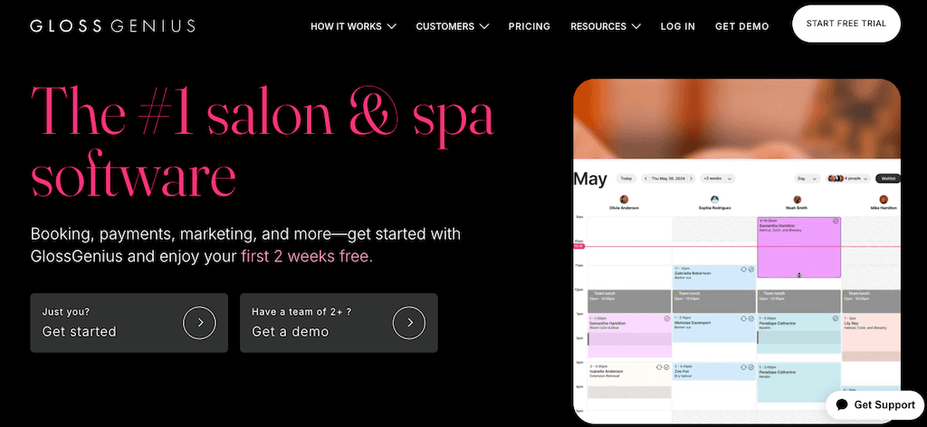 GlossGenius is best for beauty and wellness businesses that want a sleek, all-in-one platform with built-in CRM, payment processing, and marketing tools, without needing third-party integrations.